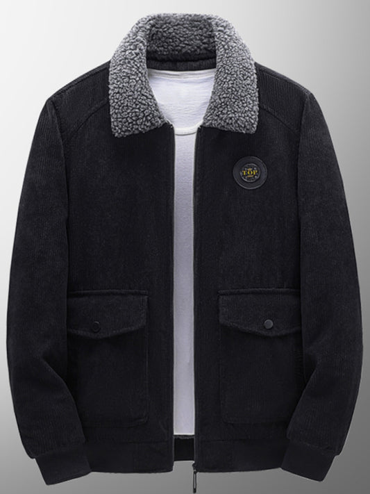 Men's lambswool lapel warm corduroy jacket
